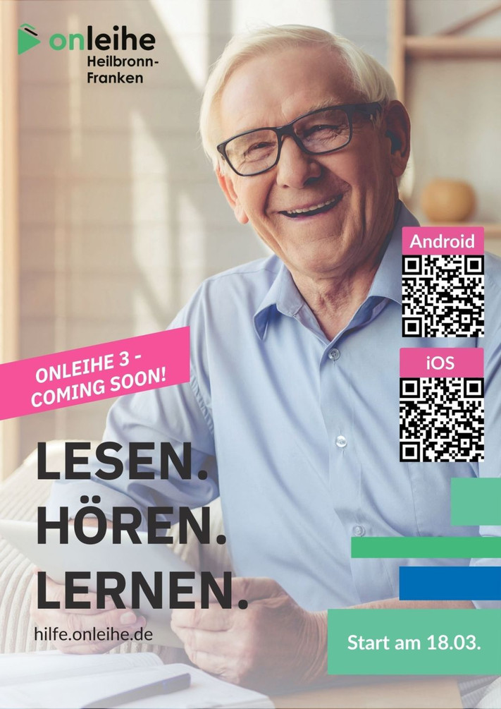 Ab Mittwoch, 18. März 2026 steht Ihnen mit der Onleihe 3 ein Lese-, Hör- und Lernangebot der besonderen Art zur Verfügung.